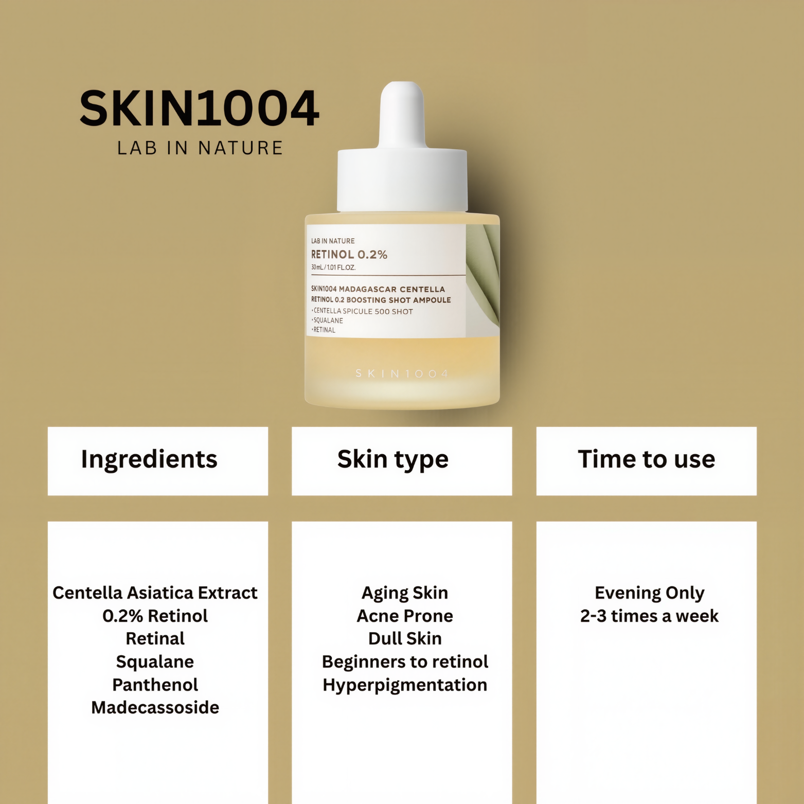- Key Actives: 0.2% Retinol, Retinal, Squalane, Centella Asiatica Extract, Panthenol, Madecassoside